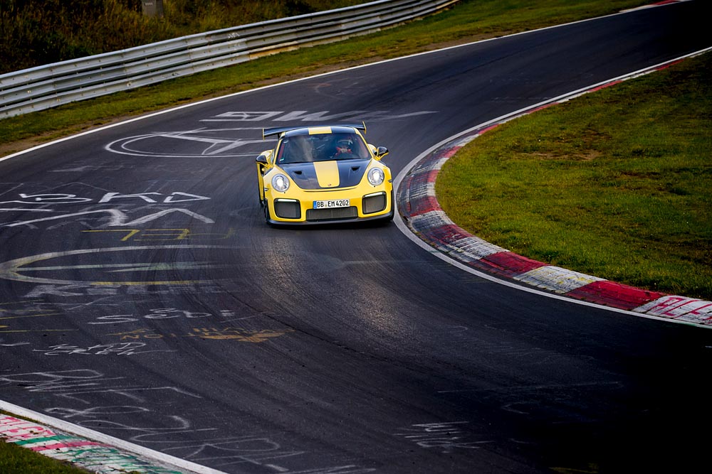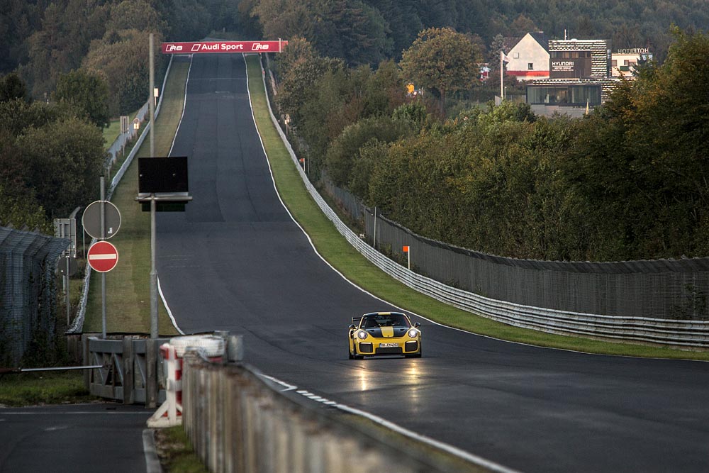Porsche GT2 RS ติดตั้งยาง Michelin Pilot Cup 2 บนรูปลักษณ์ภายนอกที่โดดเด่น สง่างาม ทางด้าน Lars Kern ผู้ซึ่งผันตัวเองจากวงการแข่งรถ มาเป็นนักขับทดสอบของ Porsche และในท้ายที่สุด เขาคนนี้คือ ผู้รับบทบาทในการจารึกสถิติความเร็วต่อรอบที่ดีที่สุด ด้วยประสบการณ์ในการเข้าร่วมแข็งขันรายการ Carrera Cup Australia รวมทั้ง การคว้าชัยชนะในรายการ VLN Endurance Championship ที่ Nürburgring แห่งนี้ Kern จึงมีความคุ้นเคยกับเส้นทางบน Nordschleife เป็นอย่างมาก ในขั้นตอนการขับทดสอบเพื่อบันทึกสถิติความเร็วต่อรอบนั้น เริ่มต้นขึ้นในเวลา 19:11 น. และจบลงด้วยระยะเวลา 6 นาที กับอีก 47.3 วินาทีต่อมา ท่ามกลางสภาพภูมิอากาศที่มีความเหมาะสมต่อการทดสอบ ซึ่งส่งผลดีสำหรับนักขับ ระยะทางรอบสนามที่ใช้ในการบันทึกเวลาคือ 20.6 กิโลเมตร ความเร็วเฉลี่ยของรถทดสอบ อยู่ที่ 184.11 กิโลเมตรต่อชั่วโมง