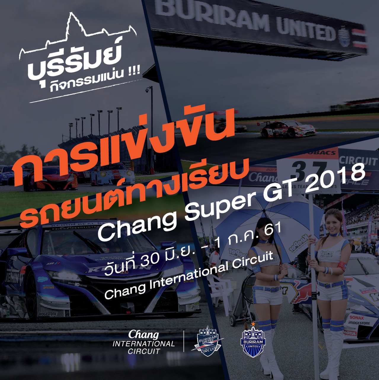 ศึกรถยนต์ทางเรียบประเภทซูเปอร์คาร์ระดับโลกจากประเทศญี่ปุ่น รายการ “ช้าง ซูเปอร์ จีที เรซ 2018” ซึ่งเป็นสนามที่ 4 ของการเก็บคะแนนสะสม มีคิวดวลความเร็วที่สนามช้าง อินเตอร์เนชั่นแนล เซอร์กิต จ.บุรีรัมย์ ระหว่างวันที่ 30 มิถุนายน -1 กรกฎาคมนี้ ภายใต้การจับตามองของแฟนความเร็วทั้งในไทยและทั่วโลก