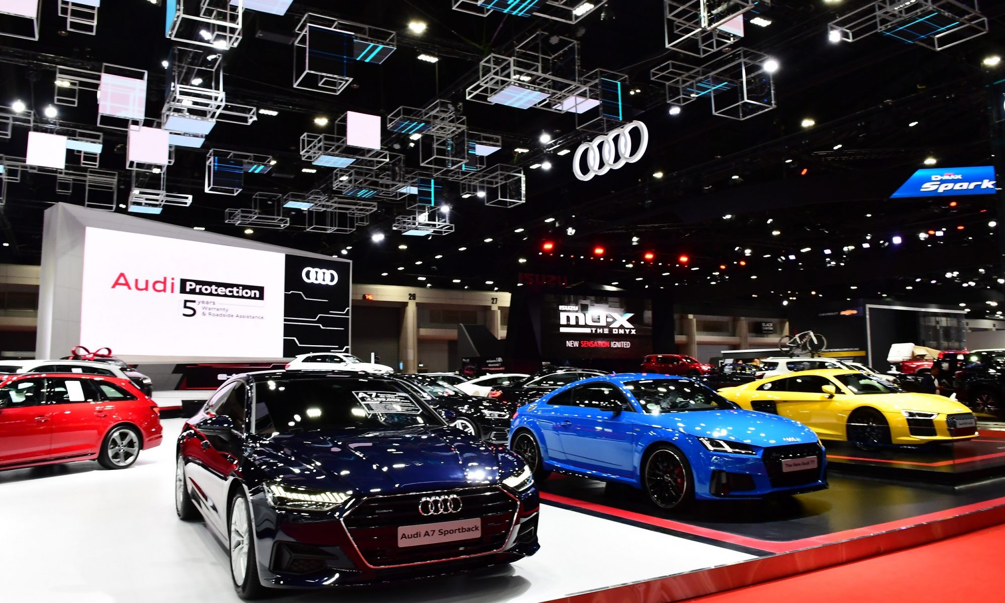 Audi Thailand เดินทัพต่อเนื่อง ยกขบวนยนตกรรมเหนือระดับทุกรุ่นให้สัมผัส ภายใต้แนวคิด Advance Through Technology ความก้าวล้ำของเทคโนโลยีอีกขั้นแห่งอาวดี้ สะท้อนเอกลักษณ์อันโดดเด่น เผยให้คุณสัมผัสอย่างใกล้ชิด และเป็นเจ้าของในทุกรุ่น ไฮไลท์เด่นที่ห้ามพลาดของบูธ อาวดี้  กับการเปิดตัวยนตกรรมพลังไฟฟ้า e-tron ต่อสาธารณชนครั้งแรก และเปิดตัวยนตรกรรมรุ่นใหม่ของ Audi หลากหลายรุ่น อาทิ รถสปอร์ตที่ใครต่างถามหาอย่าง New Audi TT Coupé และ New A7Sportback 2.0L ให้คุณยลโฉมแบบจัดเต็มกว่าเคย ที่สำคัญยังคงเดินต่อความร้อนแรงกับแคมเปญสุดพิเศษแห่งปี ออกเงินดาวน์ให้ 2 แสนถึง 5แสนบาท (ตามเงื่อนไขที่บริษัทกำหนด) และเมื่อจองรถยนต์อาวดี้ (ยกเว้น e-tron) มีสิทธิ์ลุ้นเป็นเจ้าของยนตรกรรมพรีเมียมเอสยูวีเหนือระดับ Audi Q7 Black Edition มูลค่า 5.999 ล้านบาท ถึงวันที่ 7 เมษายน นี้เท่านั้น