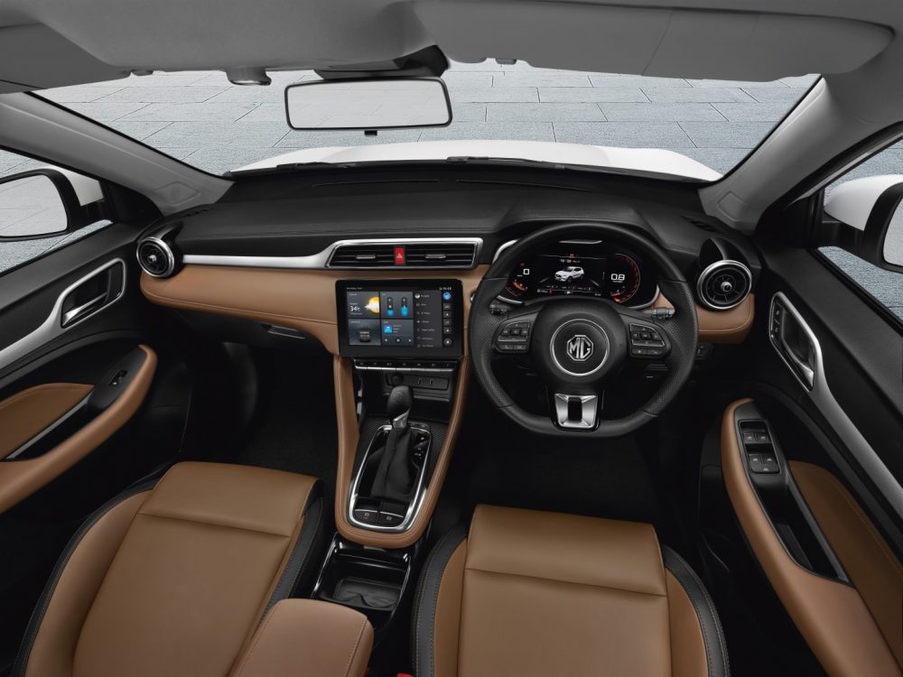 NEW MG ZS ได้รับการออกแบบภายในอย่างพิถีพิถันด้วยห้องโดยสารแบบสปอร์ตสีทูโทน และการใช้วัสดุ SOFT TOUCH ในการตกแต่ง โดดเด่นขึ้นอีกขั้นด้วยพวงมาลัยแบบมัลติฟังก์ชั่นและหน้าจอแสดงผลอัจฉริยะขนาด 7 นิ้วดีไซน์ใหม่ (Digital Multi-Function Display) และหน้าจอ touch screen ขนาดใหญ่ 10 นิ้ว ซึ่งรองรับทั้งระบบปฏิบัติการ Apple CarPlay และระบบเชื่อมต่อมัลติมีเดียกับสมาร์ทโฟนระบบ Android พร้อมช่องเชื่อมต่อ USB สำหรับผู้โดยสารด้านหลัง ระบบปรับอากาศแบบดิจิตอลที่มีระบบกรองอากาศเพื่อกรองฝุ่นขนาดเล็ก PM 2.5 อีกทั้งยังเพิ่มความสะดวกสบายด้วยเบาะนั่งคนขับปรับไฟฟ้าได้ 6 ทิศทาง พร้อมที่พักแขนด้านหน้า รวมไปถึงระบบกุญแจรีโมทอัจฉริยะ (Smart Key) พร้อมสตาร์ทเครื่องยนต์ด้วยปุ่ม Push Start และยังคงสุนทรียภาพในการขับขี่ด้วยหลังคาซันรูฟขนาดใหญ่แบบพาโนรามา (Panoramic Sunroof)