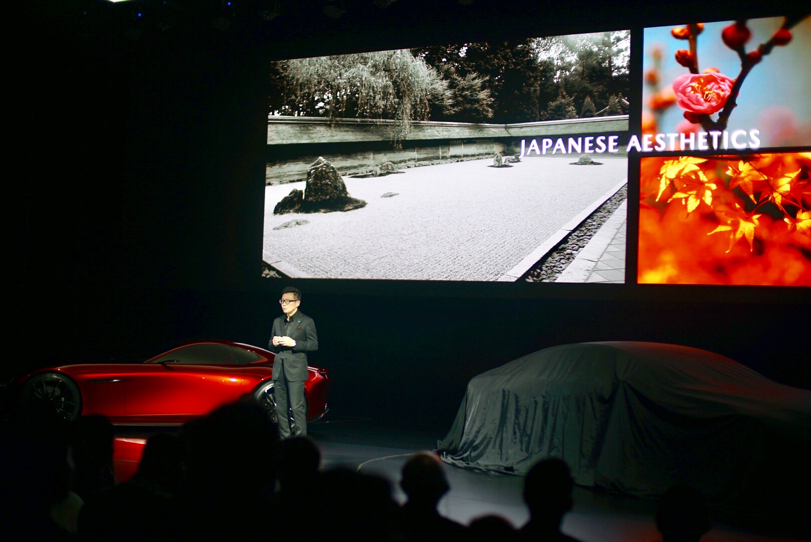 นอกจากนี้เรายังมุ่งมั่นพัฒนาด้านสุนทรียศาสตร์ ในอนาคตเราจะยึดถือคติค่านิยม และความเชื่อลักษณะนี้ในยานยนต์ของมาสด้ารุ่นใหม่ พวกเรายังคงสร้างสรรค์การออกแบบที่เหนือระดับอย่างที่ไม่เคยมีใครเคยเห็นมาก่อน พร้อมกับความมีชีวิตชีวาที่แสดงให้เห็นถึงตัวตนที่แท้จริงของความเป็นมาสด้า พวกเราได้ตั้งเป้าหมายอย่างชัดเจนถึงปรัชญาแห่งการออกแบบที่ได้รวบรวมความงดงามสไตล์ญี่ปุ่น ซึ่งหมายถึงการพัฒนาการเรียนรู้ตั้งแต่สมัยโบราณที่มีความสง่าผ่าเผยแต่แฝงไปด้วยความละเอียดอ่อน รูปลักษณ์ของรถยนต์มาสด้าจึงมิใช่เป็นเพียง “คตินิยมศิลปะญี่ปุ่น” ในความหมายแบบเรียบง่าย แต่คือการอธิบายถึงแก่นแท้ขององค์ประกอบเบื้องต้นจากสุนทรียศาสตร์ญี่ปุ่น รวมถึงการบรรยายความเรียบหรูสง่างามในรูปแบบใหม่