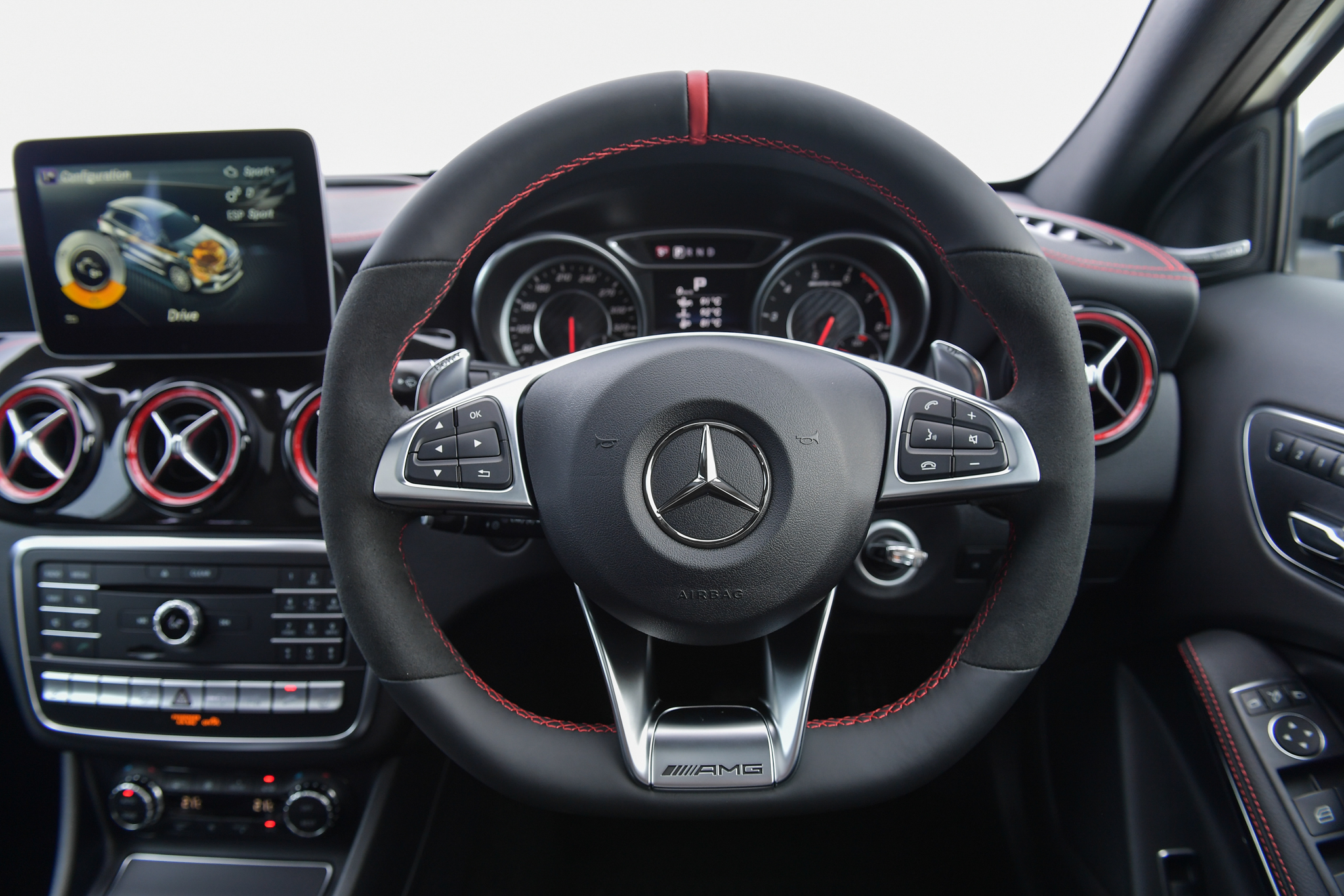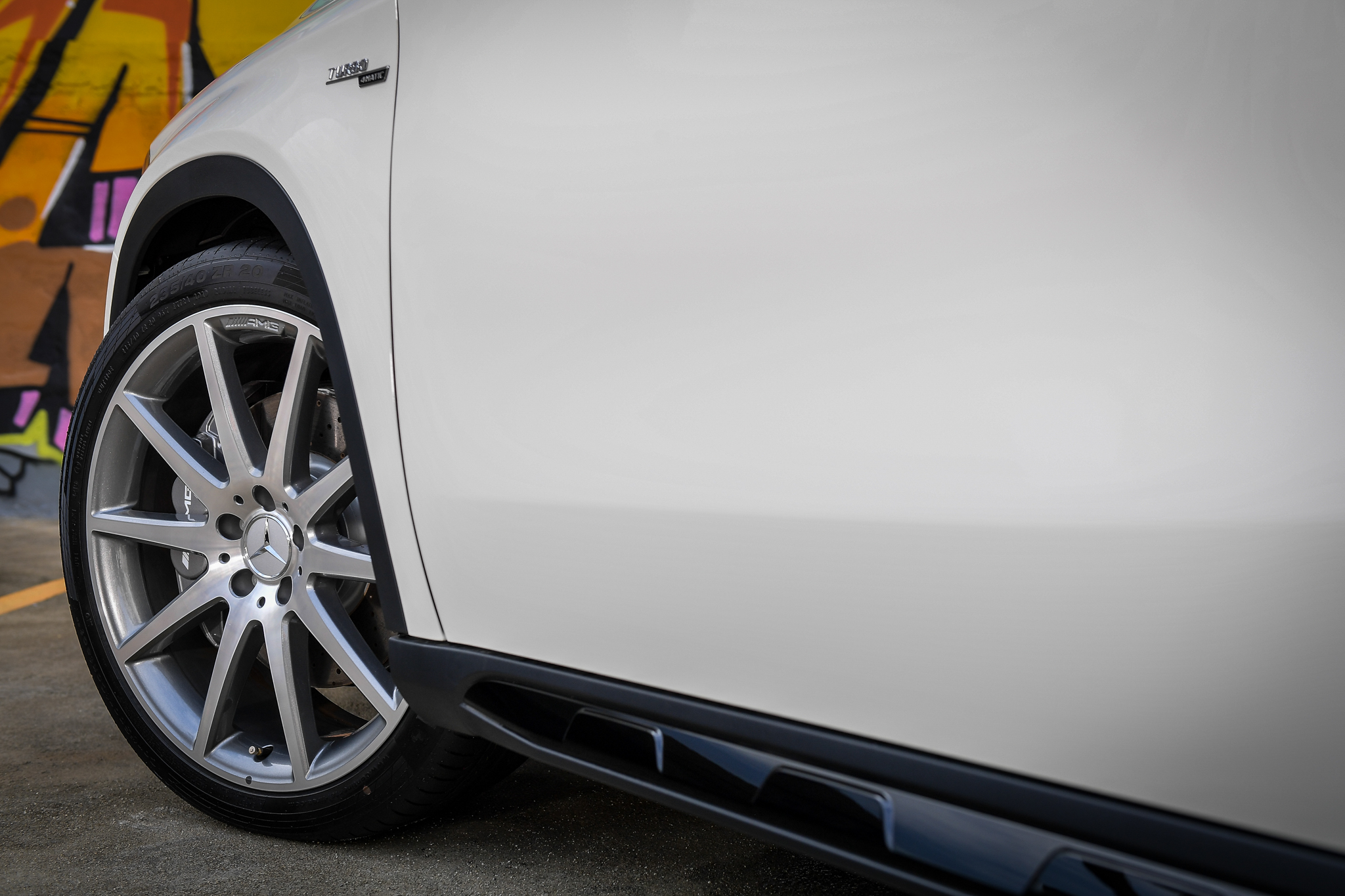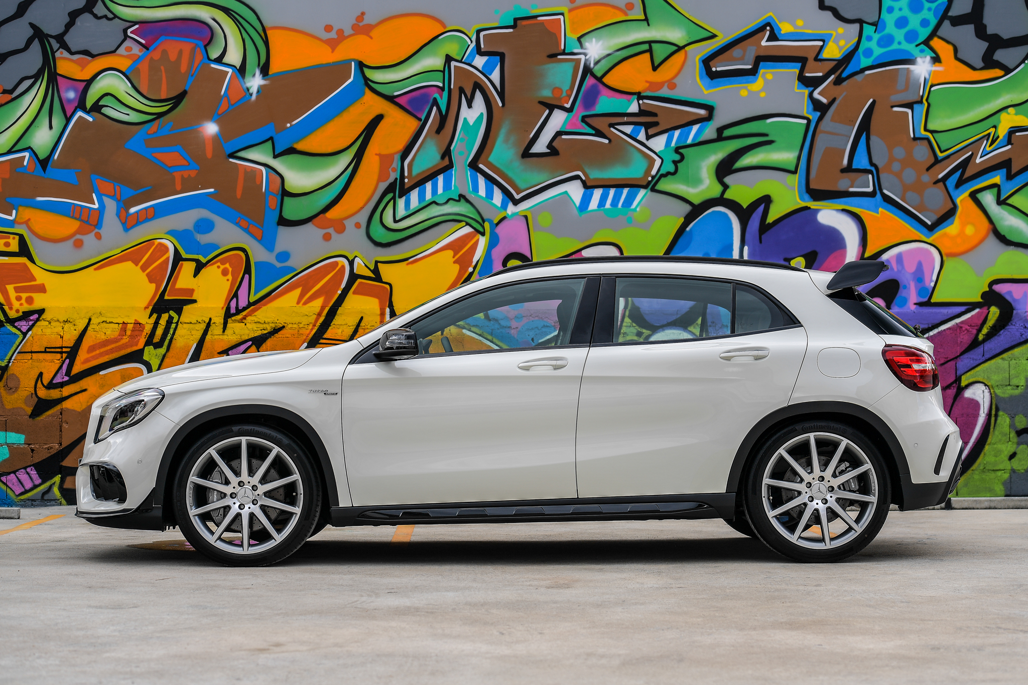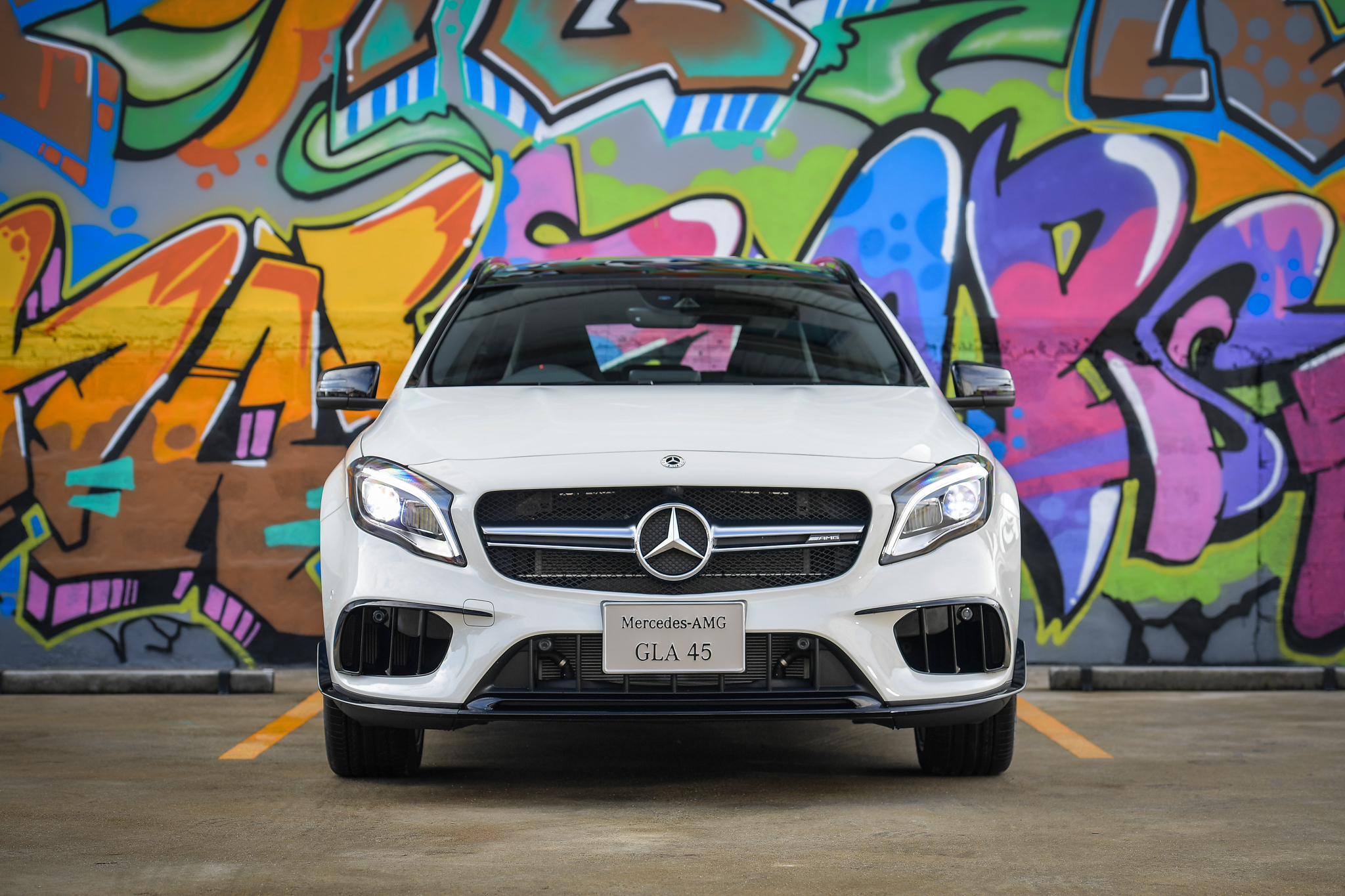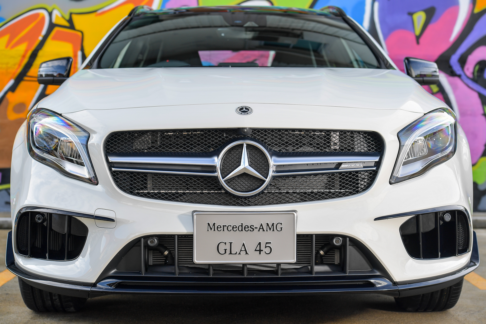Mercedes-AMG มุ่งมั่นพัฒนารถยนต์สมรรถนะสูงรุ่นใหม่ ด้วยการใช้โครงสร้างรถยนต์หลากหลายรุ่นของ Mercedes Benz ผสานกับนวัตกรรมด้านสมรรถนะของ AMG มาอย่างต่อเนื่อง โดยรถยนต์ Mercedes-AMG GLA 45 4MATIC โฉมใหม่คือรถยนต์รุ่นล่าสุดที่ Mercedes-AMG ปรับปรุงทั้งรูปลักษณ์และคุณสมบัติทางเทคนิคไปอีกขั้นหนึ่ง ซึ่งการปรับแต่งคุณสมบัติด้านอากาศพลศาสตร์ด้วยอุปกรณ์ภายนอกใหม่ๆ เช่น ฝากระโปรงหน้ารูปแบบใหม่และปลายขอบ สปอยเลอร์หลังคาที่ปรับแต่งให้ลู่ลมยิ่งขึ้นนั้น มิได้เพียงแต่จะช่วยลดแรงต้านที่ตัวรถ แต่ยังช่วยเพิ่มทั้งสมรรถนะและความสมดุลย์ขณะขับขี่อีกด้วย